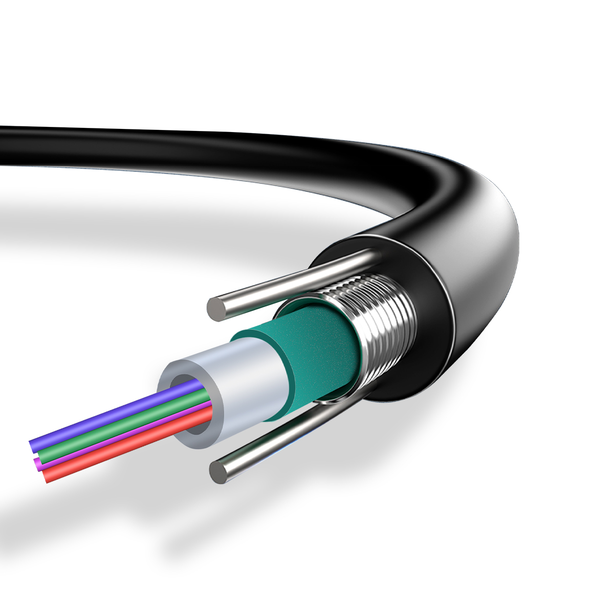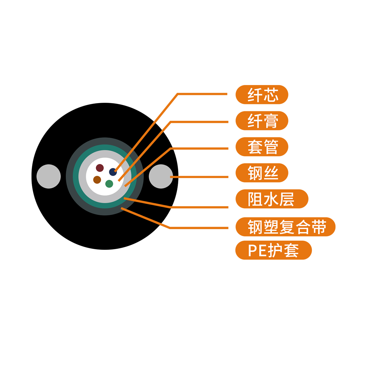 兩根平行鋼絲保證光纜的抗拉強(qiáng)度,直徑小、重量輕、容易敷設(shè)